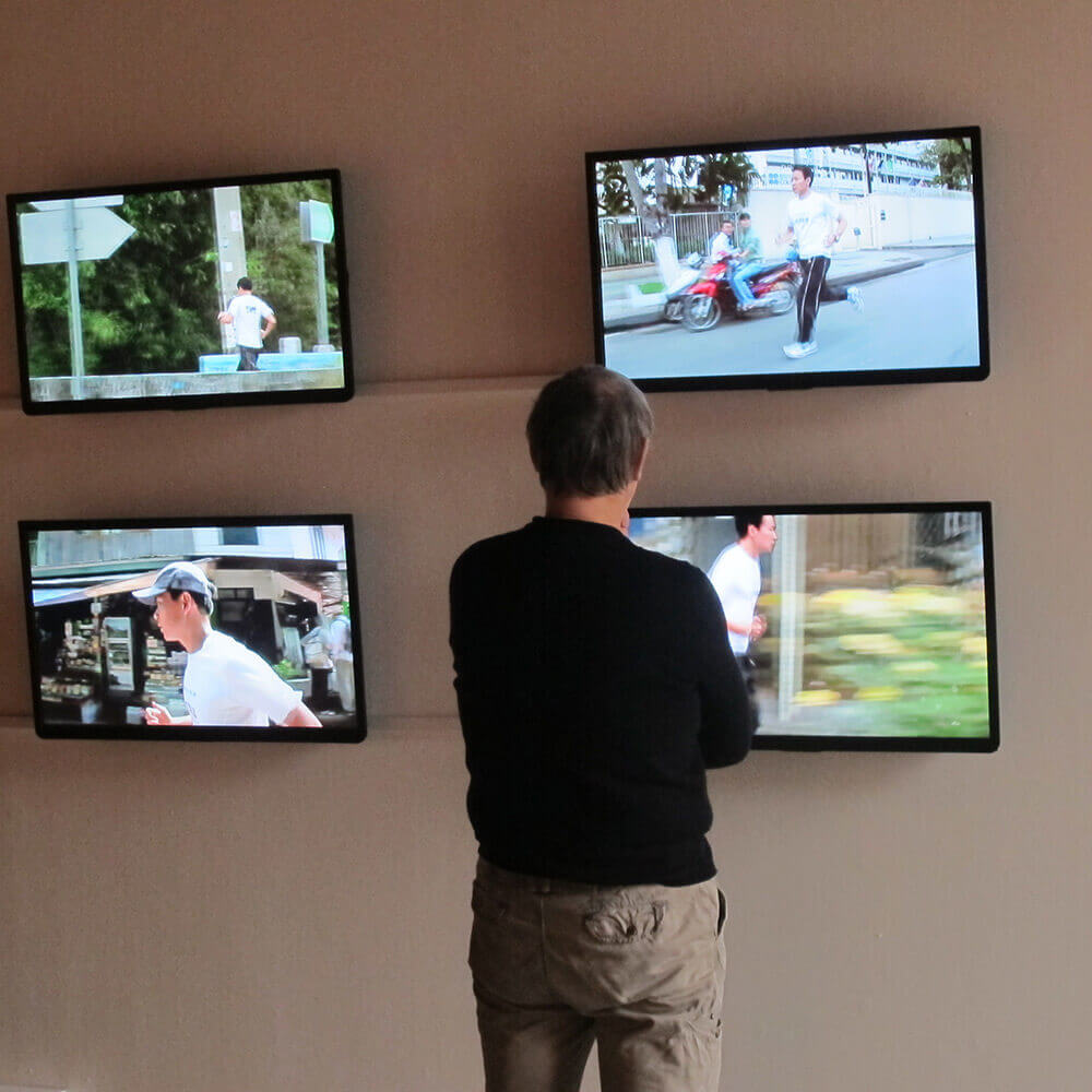 Impalpables, les vidéos, ces images aux mouvements incessants, n’offrent guère de prise pour la saisie de l’œuvre. Les photos, bien qu’images fixes, ne présentent pas plus de réalité immédiate pour qui ne peut les voir, si ce n’est leur matérialité, supports planes de tailles variées.